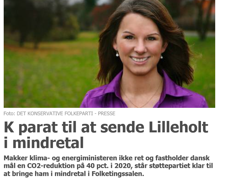 Repræsentanten for Det Konservative Folkeparti, Mette Abildgaard, lagde ikke skjul på, at hun ikke havde beskæftiget sig med klima og miljø før, og at hendes viden stammede fra læsning i sommerferien. Ikke desto mindre var Abildgaard ikke i tvivl om, at blandt de 17 mål, var klimamålet – mål 13: ”Take urgent action to combat climate change and its impacts” – langt det vigtigste. Det havde været en fejl fra regeringens side, forud for Klimatopmødet at neddrosle de danske ambitioner om målsætningen på 40 pct.s CO2-reduktion. Abildgaard fremhævede endvidere energimålet – mål 7 – og behovet for mere vedvarende og grøn energi. Abilgaard nævnte at hendes parti gik ind for fortsat fritagelse for registreringsafgift for el-biler. Mette Abildgaard erklærede på sit partis vegne ambitionen om at trække regeringen i en grøn retning, og bekræftede (til de øvrige partiers synlige tilfredshed), at de konservative var en del af det grønne flertal. Der skulle gøres noget på transportområdet og landbruget var ikke helligt, selvom indgreb var et ømtåleligt emne blandt konservative. Forslaget om en Bæredygtighedskommission ville hun drøfte med sin folketingsgruppe.
