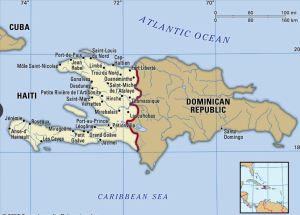 Haiti grænser op til Den Dominikanske Republik (selvstændig i 1843) på den vestlige del af øen Hispaniola i det Caribiske Hav, øst for Cuba.