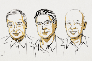 Tre forskere har mandag den 13. oktober 2025 modtaget Nobelprisen i økonomi – Det Kongelige Svenske Videnskabsakademi Sveriges Riksbanks pris i økonomisk videnskab til minde om Alfred Nobel – ved en ceremoni i Det Kongelige Svenske Videnskabsakademi i Stockholm.