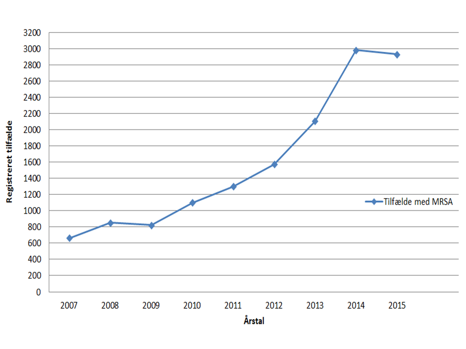 I alt blev 2.965 personer smittet med MRSA i 2014 – heraf var 1.277 smittet med husdyr-MRSA (43 pct.). I 2013 blev der i alt fundet 2094 smittet med MRSA i 2013 – heraf var 643 smittet med husdyr-MRSA. I 2015 er der konstateret 2.971 smittetilfælde og heraf var 1.147 smittet med husdyr-MRSA. I 2015 var der et lille fald i antallet af registrede MRSA, men der er altså et mønster med op mod tusind nysmittede patienter om året.